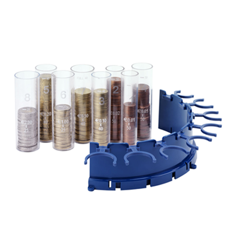 Mit der Abhülsvorrichtung schnell und einfach Münzrollen herstellen. Das optimale Zubehör um Münzen bankengerecht zu verpacken. Mit Hilfe der Batch-Funktion der CS 50 fallen die Münzen fertig abgezählt in die Röhrchen und lassen sich so ganz leicht in Papiermünzhülsen umfüllen. Die Halterung für die Münzröhrchen ist abnehmbar und mit wenigen Handgriffen montiert. So können Sie schnell wählen, ob Sie die klassichen Münzbehälter oder das Abhülssystem nutzen möchten.