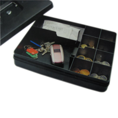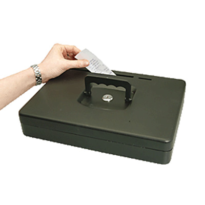 Diese Geldkassette ist dank Ihrer Abmessungen bestens für eine Befestigung in Schreibtischen und Schubladen geeignet. Der Einsatz ist sowohl für das gelegentliche Kassieren von Münzen und Banknoten geeignet als auch für die sichere Aufbewahrung persönlicher Wertgegenstände. Die Kassette verfügt über einen abschließ- und abnehmbaren Deckel sowie über zwei Einwurfschlitze für Belege oder Münzen.