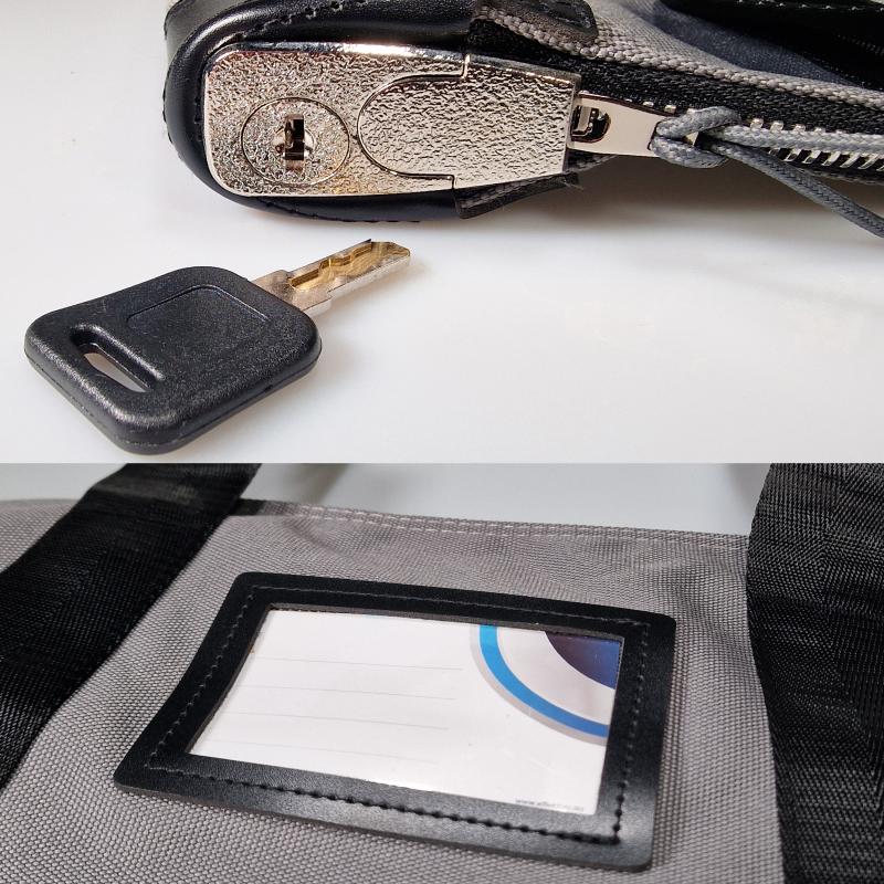 Nachdem die Geldtasche einmal verschlossen wurde, läßt sich diese ohne den passenden Schlüssel nicht wieder öffnen. Die Tasche aus widerstandsfähigem Nylongewebe ist mit einem aufgenähten Fenster und einer Beschriftungskarte für eine eindeutige Kennzeichnung versehen. Der Boden ist mit schwarzem Kunstleder verstärkt. Jede Tasche hat einen eigenen Sicherheitsschließzylinder, das bedeutet keine Tasche lässt sich mit dem Schlüssel einer anderen Tasche öffnen.